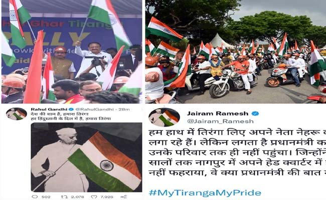 मोदी सरकार में केंद्रीय मंत्री अर्जुन मेघवाल ने कहा कि तिरंगा रैली में विपक्षी नेताओं को भी आमंत्रित किया गया था लेकिन वह नहीं आए। दिल्ली में आयोजित आज तिरंगा रैली को लेकर सत्ता पक्ष और विपक्ष के बीच जुबानी जंग शुरू हो गई। भाजपा जहां कांग्रेस की देशभक्ति पर सवाल उठा रही है तो कांग्रेस तिरंगे को लेकर उसे घेर रही है। “राहुल गांधी ने ट्विटर पर जवाहरलाल नेहरू की तिरंगा लिए फोटो शेयर करते हुए कहा है कि देश की शान है हमारा तिरंगा हर हिंदुस्तानी के दिल में है हमारा तिरंगा”। वहीं कांग्रेस नेता जयराम रमेश ने भी तिंरगे के साथ पूर्व पीएम नेहरू की तस्वीर शेयर करते हुए ट्वीट किया, ‘हम हाथ में तिरंगा लिए अपने नेता नेहरू की डीपी लगा रहे हैं, वह भी खादी में।