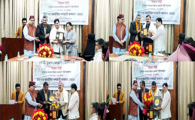 नई दिल्ली: सार्वभौमिक सोशल कल्चर एजुकेशनल चैरिटेबल ट्रस्ट एवं जयंती फाउण्डेशन के संयुक्त तत्वावधान में उत्तराखंड सदन, चाणक्यपुरी में ‘मूल की पुकार (Roots Calling)’ कार्यक्रम का भव्य आयोजन किया गया। कार्यक्रम में प्रतिलोम पलायन, घस्यारी नीति निर्धारण, वानप्रस्थ योजना तथा वीर भड़ माधोसिंह भण्डारी सम्मान–2025 जैसे महत्वपूर्ण विषयों पर उपस्थित प्रबुद्ध जनों ने विस्तृत चर्चा, सुझाव और भविष्य की कार्ययोजना पर मार्गदर्शन दिया।