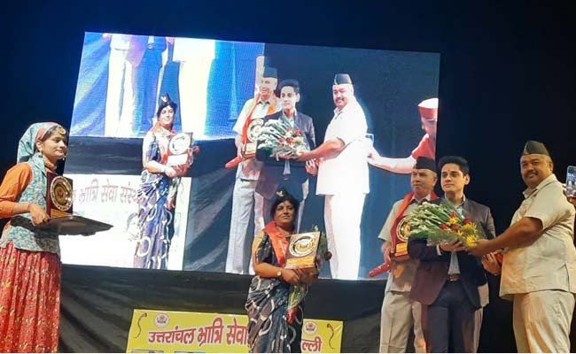 आयोजक संस्था पदाधिकारियों द्वारा, मुख्य व अन्य विशिष्ट अतिथियों को ‘विशिष्ट सेवा रत्न सम्मान’ के तहत अंगवस्त्र, पुष्पगुच्छ, पहाडी टोपी व स्मृति चिन्ह भेंट कर सम्मानित किया गया। दिल्ली पुलिस मे कार्यरत, उत्तराखंड के एक दर्जन से अधिक सेवा कर्मियों सहित, सम्मानित होने वाले अन्य समाजसेवियो व प्रबुद्धजनो मे, गोपाल सिंह महरा, राजेन्द्र चौहान, रजनी ढोंडियाल जोशी,  मंजू नेगी, भावना बिष्ट, राजेन्द्र द्वारिका, केएन पांडे, शंकर, राजेन्द्र बिष्ट इत्यादि मुख्य रहे।
