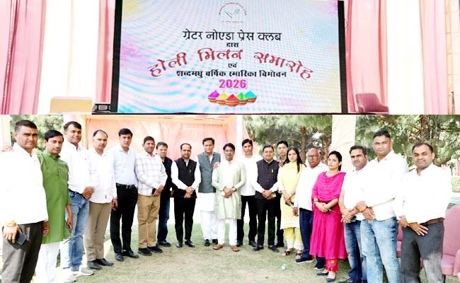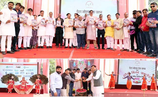 ग्रेटर नोएडा: ग्रेटर नोएडा प्रेस क्लब की ओर से आयोजित होली मिलन समारोह रविवार को सम्राट मिहिर भोज सिटी पार्क में अत्यंत हर्षोल्लास और रंगारंग अंदाज में संपन्न हुआ। कार्यक्रम के दौरान प्रेस क्लब की वार्षिक पत्रिका ‘शब्दमधु’ का भव्य विमोचन किया गया। समारोह का शुभारंभ दीप प्रज्वलन के साथ हुआ।