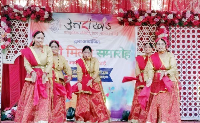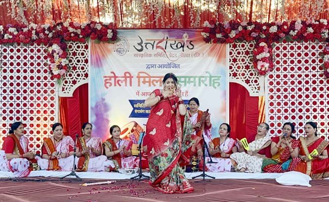 ग्रेटर नोएडा: शहर की सामाजिक संस्था उत्तराखंड सांस्कृतिक समिति द्वारा हर वर्ष की भांति इस वर्ष भी बुधवार, 3 मार्च 2026 को नॉलेज पार्क स्थित संस्कारम होटल में होली मिलन एवं होलिका दहन कार्यक्रम का आयोजन किया गया। कार्यक्रम में उत्तराखंड की पारंपरिक होली, लोकगीतों और लोकनृत्य की रंगत देखने को मिली, जिसका उपस्थित लोगों ने भरपूर आनंद लिया।