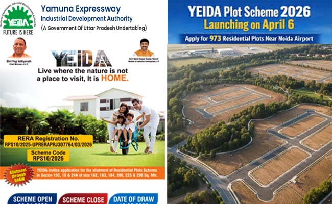 YEIDA Plot Scheme 2026: नोएडा इंटरनेशनल एयरपोर्ट के आसपास घर बनाने का सपना देखने वाले लोगों के लिए अच्छी खबर है। यमुना एक्सप्रेसवे औद्योगिक विकास प्राधिकरण (YEIDA) ने अपनी बहुप्रतीक्षित आवासीय प्लॉट योजना RPS10/2026 लांच कर दी है। इस स्कीम में नोएडा इंटरनेशनल एयरपोर्ट के नजदीक 162 मीटर से लेकर 290 मीटर तक के कुल 973 प्लॉट ऑफर किए जा रहे हैं।