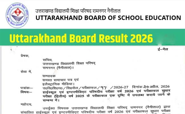 उत्तराखंड बोर्ड ऑफ स्कूल एजुकेशन (UBSE) ने परीक्षा परिणाम जारी करने की तारीख और समय का एलान कर दिया है। 10वीं और 12वीं का रिजल्ट 25 अप्रैल 2026 को सुबह 10:00 बजे घोषित किया जाएगा।
