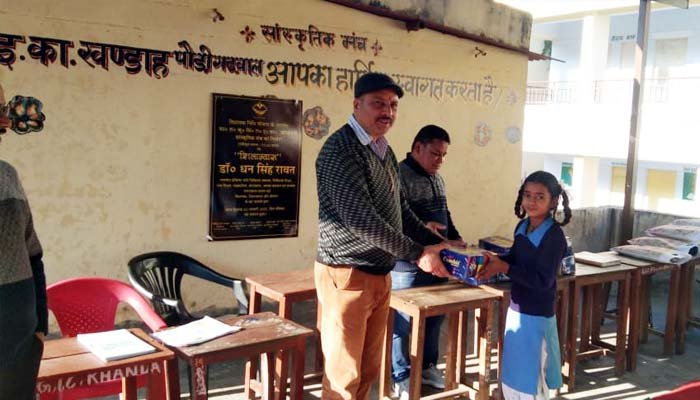 श्रीनगर: कारगिल शहीद कुलदीप सिंह राजकीय इंटर कॉलेज खंडाह, विकास क्षेत्र खिर्सू में आदि शक्ति मां भुनेश्वरी आश्रम सतपुली द्वारा निर्धन एवं असहाय छात्र छात्राओं को ड्रेस कोट एवं शूज वितरित किए गए। विद्यालय के अध्यापक संतोष पोखरियाल (सहायक अध्यापक गणित) की प्रयास द्वारा माँ भुनेश्वरी ट्रस्ट के संचालक एवं हिमालयीय विश्वविद्यालय देहरादून के प्रति कुलपति एवं सलाहकार (पूर्व) डॉ राजेश नैथानी के द्वारा विद्यालय के छात्र छात्राओं को सामग्री वितरित की गई।
