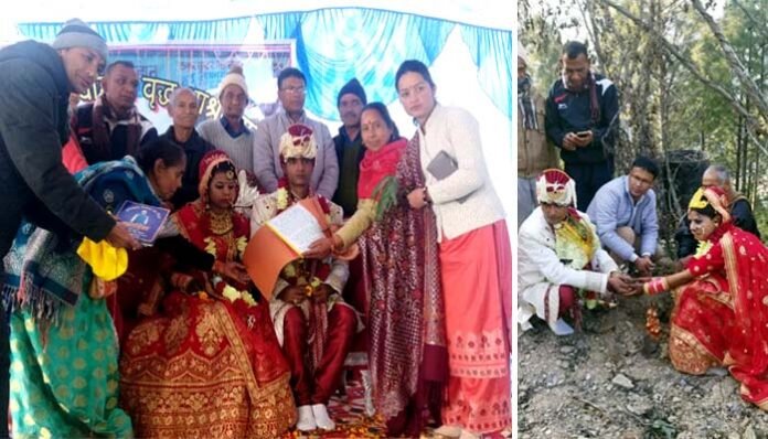 ग्राम पहर गांव थल्दा, जहरीखाल पौड़ी गढ़वाल निवासी प्रेमलाल की पुत्री पूजा की शादी ग्राम पाताल एयकेश्वर विकास खंड निवासी धीरेंद्र पाण्डे के पुत्र आशीष कुमार के साथ संपन हुई। मकर संक्रांति के पर्व पर आज निर्धारित तिथि पर ठाकुर सुंदर सिंह चौहान बृद्धाश्रम में बंधुवर सेवा समिति के सहयोग से दो दिवसीय शादी समारोह धूमधाम से संपन्न कर दूल्हा दुल्हन को भावभीनी विदाई दी गयी।