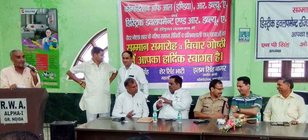 ग्रेटर नोएडा: डिस्ट्रिक्ट डेवलपमेंट रेजिडेंस वेलफेयर एसोसिएशन (DDRWA) द्वारा ग्रेटर नोएडा शहर की कानून व्यवस्था के बारे मे चर्चा से लेकर शहर के मेधावी बच्चों, रेजिडेंस वेलफेयर एसोसिएशनस एवं फेडरेशन के पदाधिकारियों को सम्मानित करने के लिए अल्फ़ा-1 कम्युनिटी सेंटर मे अल्फ़ा-1 RWA के सहयोग से एक कार्यक्रम आयोजित किया गया। कार्यक्रम मे मुख्य अतिथि के रूप मे एडिशनल डिस्ट्रिक्ट मजिस्ट्रेट श्री केशव कुमार तथा एस पी देहात श्री आशीष श्रीवास्तव मौजूद थे।