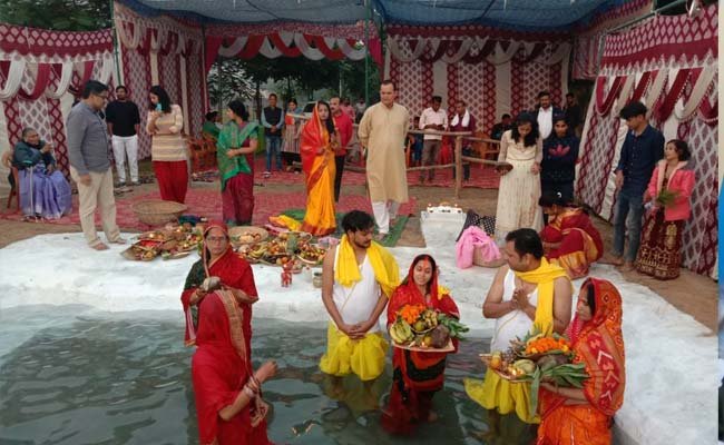 ग्रेटर नोएडा, ग्रेटर नोएडा वेस्ट व आसपास के क्षेत्रों कुलेसरा, सूरजपुर, कासना में बड़ी संख्या में बिहार व पूर्वी उत्तर प्रदेश के लोग रहते हैं,जो छठ पूजा को धूमधाम के साथ मनाते हैं। इस पर्व के प्रति बढ़ती आस्था को देखते हुए शहर के नॉलेज पार्क स्थित आईईसी कालेज के पास, सेक्टर जू-3, म्यू-2, कासना, नवादा गांव शनि मंदिर के पास, ग्रेटर नोएडा वेस्ट स्थित चेरी काउंटी के पास आदि स्थानों पर बनाए गए कृत्रिम घाटों पर बड़ी संख्या में व्रतियों ने पूरे विधि विधान के साथ डूबते हुए सूर्य को अघ्र्य दिया। छठ व्रती व उनके परिवार के लोग दोपहर में ही घाटों पर पहुंच गए और पूजा की तैयारी में जुट गए।