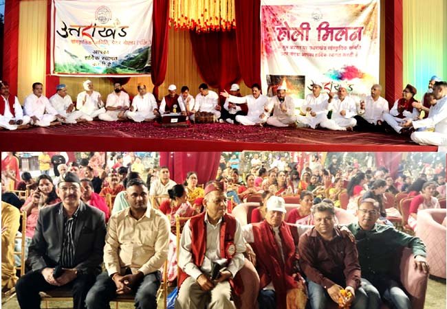 ग्रेटर नोएडा: शहर की सामाजिक संस्था उत्तराखंड सांस्कृतिक समिति द्वारा हर वर्ष की भांति इस वर्ष भी छोटी होली के दिन (गुरुवार,13 मार्च 2025) को ग्रेटर नोएडा के नॉलेज पार्क स्थित संस्कारम होटल में होली मिलन एवं होलिका दहन कार्यक्रम आयोजित किया गया। शाम करीब 4 बजे से शुरू हुए होली मिलन समारोह में समिति के सदस्यों के बच्चों के अलावा सेक्टर अल्फा 2, सेक्टर 36 एवं एवीजे हाईट की महिला मण्डलियों द्वारा होली के गीतों की रंगारंग प्रस्तुतियां पेश की गयी। जिसका उपस्थित लोगों ने भरपूर आनन्द लिया। उसके बाद सेक्टर अल्फा 2 तथा सेक्टर 36 की पुरुष मंडली द्वारा कुमाऊँ की प्रसिद्ध बैठकी होली की शानदार प्रस्तुति पेश की गयी.