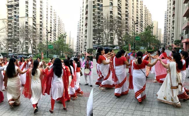 ग्रेटर नोएडा वेस्ट की पाल्म ओलंपिया सोसायटी में रविवार को देवभूमि उत्तराखंड सहयोग समिति द्वारा होली मिलन समारोह आयोजित किया गया। इस अवसर पर महिलाओ व पुरुषों ने उत्तराखंड के पारंपरिक बाध्य यंत्रों (ढोल, दमोऊ) में होली के गीतों पर सामूहिक लोक नृत्य किया। इस दौरान सभी ने एक दूसरे को अबीर गुलाल लगाकर होली की शुभकामनाये दी।