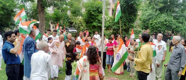 प्रभात फेरी के बाद ब्लॉक के पार्क में ध्वजारोहण किया गया, जिसमें सैकड़ों निवासी उत्साहपूर्वक शामिल हुए। ध्वजारोहण के उपरांत मिष्ठान वितरण कर सभी ने एक-दूसरे को 79वें स्वतंत्रता दिवस की बधाई दी।