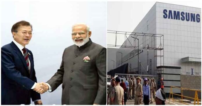 नोएडा: प्रधानमंत्री नरेंद्र मोदी सैमसंग कंपनी की नई मैन्युफैक्चरिंग यूनिट का उद्घाटन करने के लिए आज शाम 4 से 5 बजे के बीच नोएडा के सेक्टर 81 स्थित सैमसंग कंपनी के सभागार मे आ रहे हैं। उनके साथ भारत दौरे पर आये दक्षिण कोरिया के राष्ट्रपति मून जे इन भी इस कार्यकम मे शामिल होंने पहुँच रहे हैं। सैमसंग कंपनी नोएडा में अपनी मैन्युफैक्चरिंग यूनिट का विस्तार करने जा रही है। जिसमे हर रोज लगभग 7 लाख मोबाइल हैंडसेट बनाये जायेंगे इसके लिए कंपनी ने 4915 करोड़ का इन्वेस्टमेंट निवेश कर रही है।