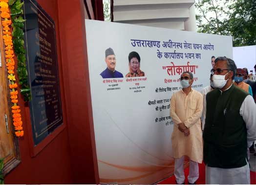 देहरादून : मुख्यमंत्री त्रिवेन्द्र सिंह रावत ने शुक्रवार को रायपुर, देहरादून में अधीनस्थ सेवा चयन आयोग, उत्तराखण्ड के नवनिर्मित भवन का लोकार्पण किया। मुख्यमंत्री त्रिवेन्द्र ने कहा कि अधीनस्थ सेवा चयन आयोग का भवन बनने से आयोग में कार्यों में तेजी आयेगी। उन्होंने कहा कि मार्च 2017 से अब तक लगभग तीन वर्षों में अधीनस्थ सेवा चयन आयोग द्वारा 59 परीक्षाएं आयोजित की गई हैं, जिसमें 6000 पदों पर चयन प्रक्रिया पूर्ण की गई है। इस चयन वर्ष में 2500 पदों पर भर्ती की प्रक्रिया शुरू की गई है, 03 हजार पदों पर जल्द भर्ती प्रक्रिया शुरू की जायेगी। मुख्यमंत्री त्रिवेन्द्र ने कहा कि उत्तराखण्ड अधीनस्थ सेवा चयन आयोग अन्य राज्यों के अधीनस्थ सेवा चयन आयोगों से तेजी से कार्य कर रहा है। कोविड-19 की वजह से भर्ती प्रक्रियाओं में थोड़ा विलम्ब हुआ है। कोविड की स्थिति सामान्य होने पर भर्ती प्रक्रियाओं में तेजी लाई जायेगी। यह वर्ष रोजगार वर्ष के रूप में मनाया जा रहा है। आयोग को भर्ती प्रक्रियाओं में और तेजी लाने को कहा गया है।