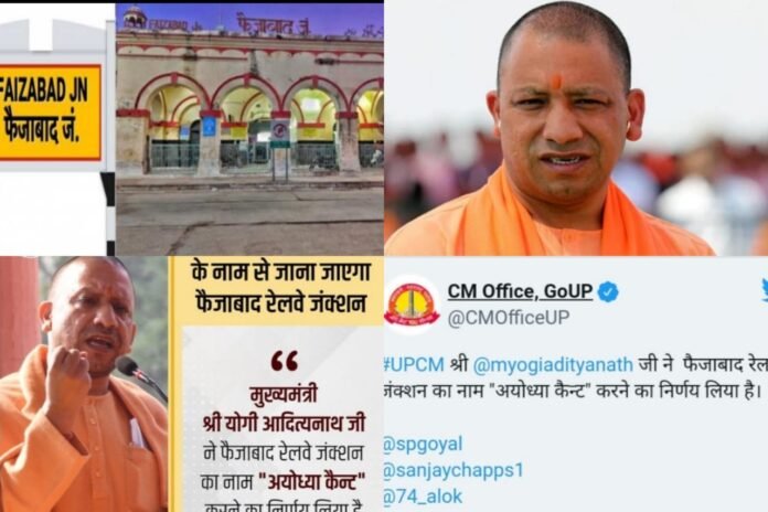 उत्तर प्रदेश विधानसभा चुनाव आने से पहले योगी सरकार ने आज एक और स्टेशन का नाम बदल दिया है। केंद्र सरकार से मंजूरी मिलने के बाद यूपी में फैजाबाद रेलवे स्टेशन का नाम बदल दिया गया है। अब इसका नाम अयोध्या कैंट कर दिया गया है। मुख्यमंत्री कार्यालय ने शनिवार को इस बात की जानकारी दी।