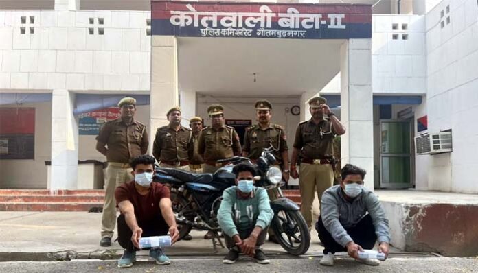 Greater Noida News : ग्रेटर नोएडा के बीटा-2 थाना क्षेत्र के अंतर्गत महिलाओं से मोबाइल फोन लूटने वाले गिरोह के तीन अभियुक्तों को पुलिस ने ओमेक्स मॉल के पास से गिरफ्तार किया है। पुलिस ने इनके पास से दो मोबाइल बरामद किए हैं। गिरोह के अन्य सदस्यों के बारे में जानकारी की जा रही है।