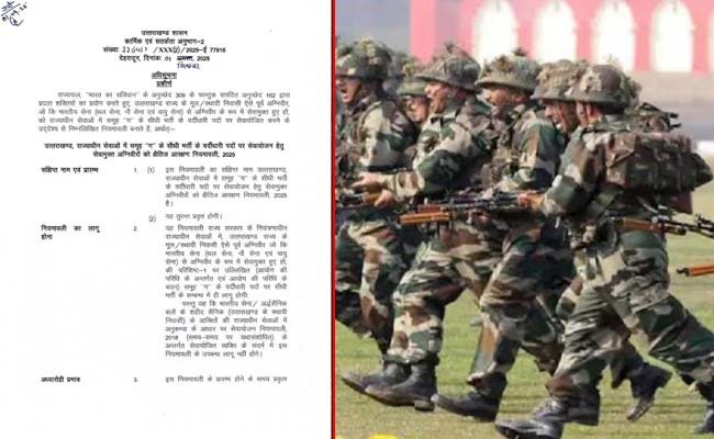इस संबंध में सोमवार को कार्मिक एवं सर्तकता विभाग की ओर से विधिवित तौर पर उत्तराखंड राज्याधीन सेवाओं में समूह ग के सीधी भर्ती के वर्दीधारी पदों पर सेवायोजन हेतु सेवामुक्त अग्निवीरों को क्षैतिज आरक्षण नियमावली – 2025 जारी कर दी है।