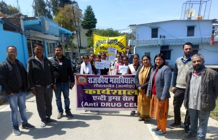 राजकीय महाविद्यालय शीतलाखेत में आज नशे के खिलाफ जागरूकता कार्यक्रम आयोजित किया गया। कार्यक्रम में नशा मुक्ति के लिए प्रभावी लोकचेतना जागृत करने हेतु पोस्टर, बैनर एवं तख्तियों के द्वारा स्थानीय लोगों को नशा एवं उसके कुप्रभाव के प्रति जागरूक किया गया। पोस्टर पर हस्ताक्षर अभियान तथा नशे के खिलाफ जागरूकता रैली में सभी स्थानीय स्थानों पर लोगों को नशे से होने वाले हानि के प्रति जागरूक किया गया।