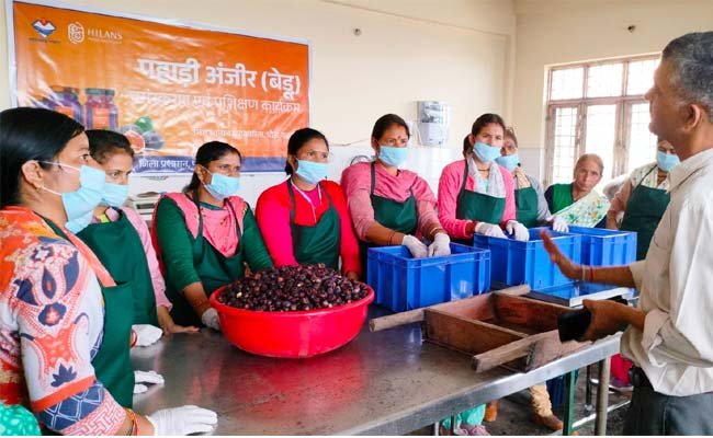 जिलाधिकारी के मार्गदर्शन में ग्रामोत्थान परियोजना (रीप) द्वारा उमंग स्वायत्त सहकारिता, पौड़ी में बेडू प्रसंस्करण इकाई स्थापित की गई है। यह फैडरेशन 31 गांवों के 62 स्वयं सहायता समूहों की 388 महिला सदस्यों से जुड़ी है। फैडरेशन किसानों से ₹60 प्रति किलो की दर से बेडू क्रय कर जैम, चटनी, स्क्वैश, मिठाई आदि उत्पाद तैयार करती है, जिनका विपणन हिलांस ब्रांड के माध्यम से पौड़ी, श्रीनगर, रुद्रप्रयाग, अल्मोड़ा, ऋषिकेश, देहरादून, उत्तरकाशी और चमोली जैसे जिलों में किया जा रहा है।