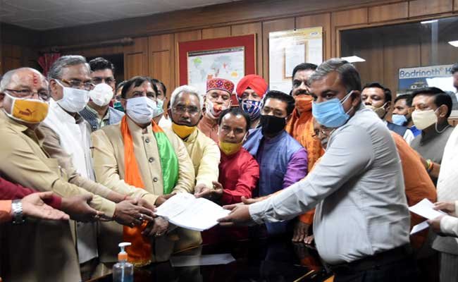 देहरादून : उत्तराखण्ड से राज्यसभा के लिए भाजपा प्रत्याशी नरेश बंसल ने मंगलवार को विधानसभा में पर्चा भरा। इस अवसर पर मुख्यमंत्री त्रिवेंद्र सिंह रावत, कैबिनेट मंत्री मदन कौशिक, भाजपा के प्रदेश अध्यक्ष बंशीधर भगत, उच्च शिक्षा राज्य मंत्री डॉ धन सिंह रावत व अन्य कार्यकर्त्ता उपस्थित रहे।