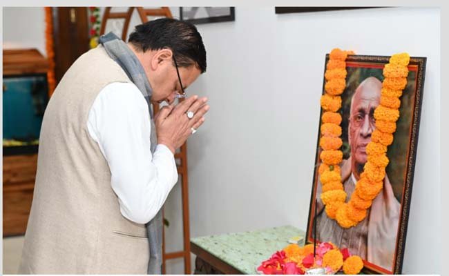 देहरादून: मुख्यमंत्री पुष्कर सिंह धामी ने अखंड भारत के शिल्पकार, महान स्वतंत्रता सेनानी एवं ‘भारत रत्न’ लौहपुरुष सरदार वल्लभभाई पटेल जी की पुण्यतिथि पर मुख्यमंत्री आवास में उनके चित्र पर पुष्पांजलि अर्पित कर उन्हें भावपूर्ण श्रद्धांजलि दी।