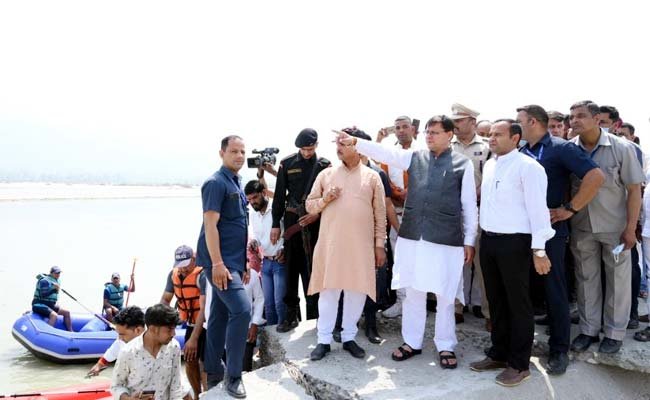दो दिवसीय चंपावत दौरे पर पहुंचे मुख्यमंत्री पुष्कर सिंह धामी ने शनिवार को टनकपुर मुख्य बाजार समीप स्थित शारदा घाट में नदी से हो रहे कटाव एवं उसके बचाओ हेतु हो रहे कार्यों का स्थलिय निरीक्षण किया।