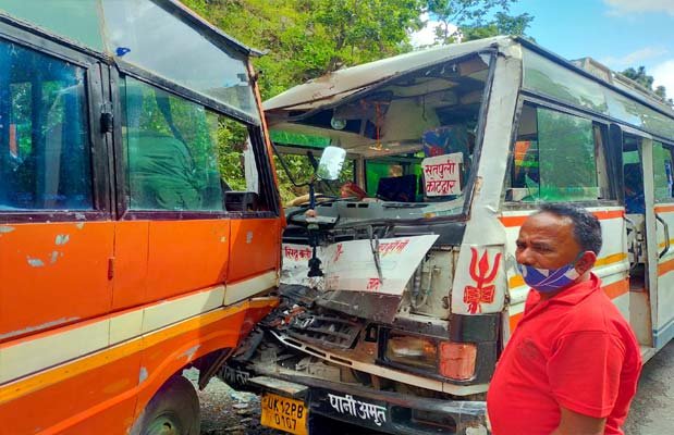 सतपुली : पौड़ी गढ़वाल के सतपुली थाना क्षेत्र के अंतर्गत सतपुली-कोटद्वार राष्ट्रीय राजमार्ग 534 में कुल्हाड़ के पास मंगलवार दोपहर कोटद्वार से सतपुली की ओर आ रही तथा सतपुली से कोटद्वार की ओर जा रही जीएमओयू की बसों की आमने-सामने टक्कर हो गईl जिसमें चालक सहित तीन लोग घायल हो गए, जिन्हें 108 के माध्यम से संयुक्त चिकित्सालय सतपुली में लाया गयाl