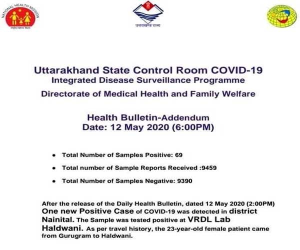 देहरादून : उत्तराखंड में मंगलवार को कोरोना संक्रमण का एक मामला सामने आया है। मंगलवार को नैनीताल जिले के हल्द्वानी में एक 23 वर्षीय युवती में कोरोना संक्रमण की पुष्टि हुई है। जानकारी के मुताबिक हल्द्वानी निवासी यह युवती तीन दिन पहले ही गुरुग्राम से बस से हल्द्वानी लौटी थी। उसे संस्थागत क्वारंटीन किया गया था। युवती को गले में खरास की शिकायत बताई गई थी। जिसके आधार पर स्वास्थ्य विभाग ने युवती का सैंपल जांच के लिए सुशीला तिवारी मेडिकल कॉलेज हल्द्वानी भेजा था। मंगलवार को युवती में कोरोना संक्रमण की पुष्टि हुई है। युवती को हल्द्वानी मेडिकल कॉलेज के आइसोलेशन में भर्ती किया गया है। इसके साथ ही अब प्रदेश में संक्रमित मरीजों की संख्या 69 हो गई है। इनमें से 46 मरीज ठीक हो चुके हैं।