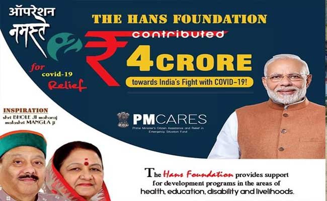 कोविड-19 संक्रमण के चलते महामारी की आगोश में फंसे देश को उभारने के लिए हंस फाउंडेशन माता मंगला जी एवं श्री भोले जी महाराज की प्रेरणा से उत्तराखंड, उत्तर प्रदेश, राजस्थान, बिहार-झारखंड, पश्चि बंगाल, आंध्र प्रदेश, दुचेरी, महाराष्ट्र, सिक्किम, अरूणाचल प्रदेश, छत्तीसगढ़, केरला, दिल्ली, हरियाणा, हिमाचल प्रदेश, कर्नाटक और पंजाब सहित देश के कई अन्य हिस्सों में ऑपरेशन नमस्ते अभियान के माध्यम से सोशल डिस्टेसिंग का अनुपालन करते हुए डिजिटल इंडिया के माध्यम से लाखों गरीब परिवारों तक राशन,मास्क और तमाम दूसरी सेवाएं पहुंचा रहा है।