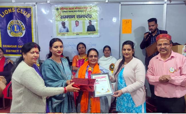 श्रीनगर गढ़वाल : लायंस क्लब श्रीनगर गढ़वाल लगातार अपनी सामाजिक सहभागिता निभाने के साथ-साथ विभिन्न क्षेत्रों में उत्कृष्ट कार्य करने वाले नागरिकों को सम्मानित करता रहता है. इसी कड़ी में 8 मार्च को अंतर्राष्ट्रीय महिला दिवस के अवसर पर क्लब द्वारा विभिन्न क्षेत्रों में उत्कृष्ट कार्य करने वाली 26 महिलाओं को स्मृति चिन्ह भेंटकर एवं शॉल उड़ाकर सम्मानित किया गया. लक्ष्य कोचिंग संस्थान के प्रांगण में आयोजित कार्यक्रम में मुख्य अतिथि डिप्टी सीएमओ डॉक्टर कमलेश भारती एवं विशिष्ट अतिथि प्रो. मोनिका गुप्ता एवं प्रो. अनीता सती थी.