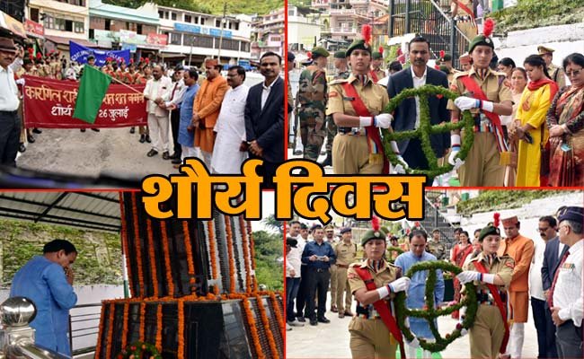 जिलाधिकारी डॉ. जोगदण्डे ने कहा कि वर्ष 1999 में पाकिस्तान ने कारगिल पर हमला कर दिया था, इस दौरान देश के कई सैनिकों ने देश की रक्षा करते हुए अपना सर्वोच्च बलिदान दिया है, जिसे देश हमेशा याद करता रहेगा। कारगिल युद्ध लगभग 60 दिनों तक चला और इस युद्ध की समाप्ति 26 जुलाई को हुई। इस युद्ध में भारतीय सेना ने जीत हासिल की। तब से हर साल 26 जुलाई को कारगिल विजय दिवस के रूप में मनाया जाता है और युद्ध में शहीद होने वाले भारतीय सेना के जवानो को और देश के प्रति दी गई उनकी कुर्बानी को याद किया जाता है। उसके उपरांत प्रेक्षागृह पौड़ी में शहीदों के चित्रों पर श्रद्धासुमन अर्पित कर श्रद्धांजलि दी गयी। इस दौरान मंत्री ने शहीद के परिजनों को सम्मानित भी किया। वहीं स्कूली छात्रों द्वारा देशभक्ति गीत की शानदार प्रस्तुति दी गई। साथ ही अतिथियों द्वारा विभिन्न कार्यक्रमों में बेहतर प्रदर्शन करने वालें छात्र-छात्राओं को भी सम्मानित किया गया।