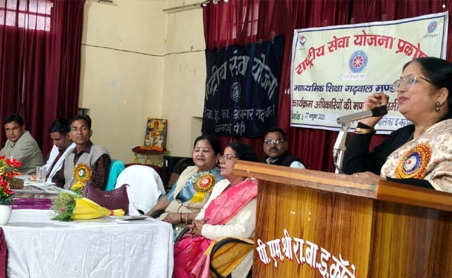 प्रधानाचार्या सुमलता पंवार ने स्वागत उद्बोधन में कहा कि एनएसएस युवा छात्र-छात्राओं को सामाजिक कार्यों से जोड़ने का सशक्त माध्यम है। अपर शिक्षा निदेशक गढ़वाल मण्डल कंचन देवराड़ी ने कहा कि शिशक युग निर्माता होते हैं. जो छात्र-छात्राओं का व्यक्तित्व निर्माण करके उन्हें संस्कारित बनाकर राष्ट्र का एक जिम्मेदार नागरिक बनाना हैं। प्रधानाचार्या सुमनलता पंवार ने स्वागत उद्‌बोधन करते हुए कहा कि एनएसएस युवा छात्र छात्राओं को सामाजिक कार्यो से जोड़ने का एक सशक्त माध्यम है।