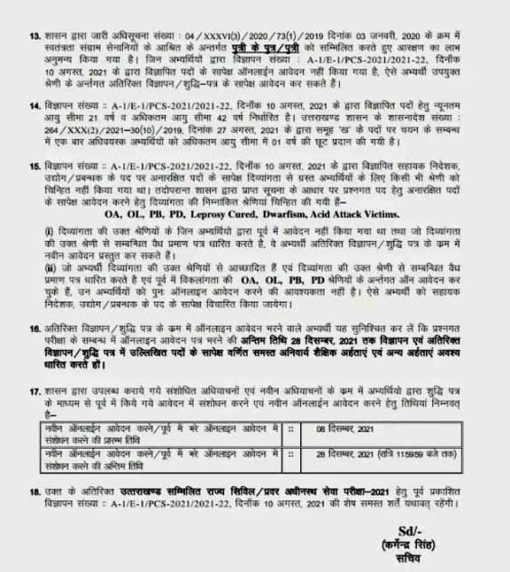 अभ्यर्थी UKPSC की आधिकारिक वेबसाइट ukpsc.gov.in के जरिए 8 दिसंबर से 28 दिसंबर 2021 तक आवेदन कर सकते हैं। आयोग ने इस संबंध में अपनी आधिकारिक वेबसाइट पर 8 दिसंबर 2021 को 94 पदों की संख्या को बढ़ाते हुए नया नोटिफिकेशन जारी किया है। इन विभिन्न पदों पर आवेदन करने वाले अभ्यर्थी के पास किसी भी मान्यता प्राप्त विश्वविद्यालय से स्नातक की डिग्री होनी चाहिए।