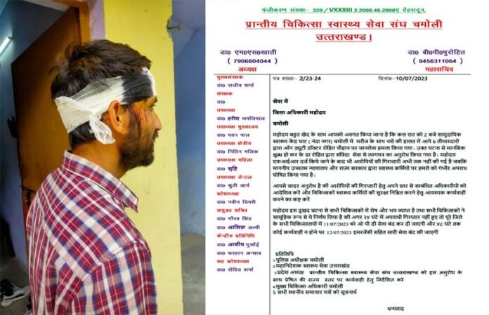 सामुदायिक स्वास्थ्य केंद्र घाट (नंदानगर), चमोली में रविवार रात को ड्यूटी पर तैनात चिकित्सक डॉ. रोहित चौहान के साथ मरीज के तीमारदारों ने जानलेवा हमला कर दिया। घायल चिकित्सक द्वारा जानलेवा हमले की एफआईआर दर्ज कराये जाने के बाद भी आरोपियों की गिरप्तारी अभी तक नहीं की गई है। जिससे आक्रोशित प्रांतीय चिकित्सा स्वास्थ्य सेवा संघ चमोली के चिकित्सकों ने आरोपियों को गिरफ्तार न किए जाने पर आंदोलन की चेतावनी दी है।