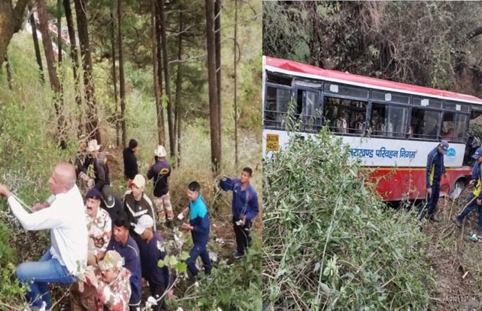 उत्तराखंड में मसूरी-देहरादून रोड़ पर आज दोपहर एक दर्दनाक हादसा हो गया। मसूरी से देहरादून आ रही उत्तराखंड रोडवेज की बस शेरगड़ी के पास अनियंत्रित होकर खाई में जा गिरी। इस हादसे में 38 यात्री घायल हो गए। जबकि दो (मां-बेटी) की मौत हो गई। हादसे की सूचना पर पहुंची मसूरी पुलिस की टीम ने आइटीबीपी, एसडीआरएफ, फायर और ने स्थानीय लोगों की मदद से खाई से लोगों को निकाला। सभी घायलों का रेस्क्यू कर लिया गया है। बस में कुल 42 यात्री सवार थे।