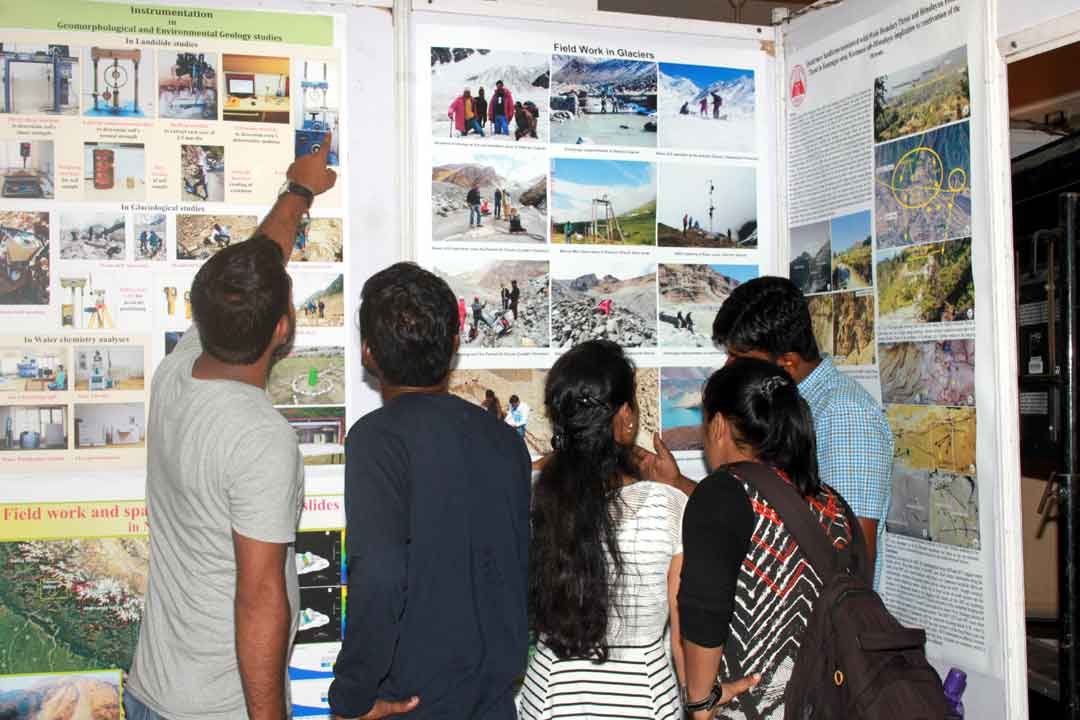 वाडिया हिमालय भू-विज्ञान संस्थान, देहरादून संस्थान के स्वर्ण जंयती समारोह के अवसर पर मंगलवार को एक विज्ञान प्रदर्शनी का आयोजन किया गया. विज्ञान प्रदर्शनी का शुभारम्भ संस्थान की कार्यकारी निदेशक, डा. मीरा तिवारी द्वारा किया गया। संस्थान द्वारा आयोजित विज्ञान प्रदर्शनी में संस्था के सभी विभागों ने बढ़ चढ़ कर भाग लिया। सभी विभागों ने अपने शोधकोर्यों को पोस्टरों, मॉडलो व यंत्रो के माध्यम से प्रदर्शित किया। भू-भौतिकी विभाग ने जहाँ भूकम्प, भूकम्प पूर्वसूचक अध्ययन, सतह से भूगर्भ की जानकारी, जियोडेटिक अध्ययन की जानकारी प्रदर्शित की वहीं अध्ययन मे प्रयुक्त होने वाले यंत्रो के भी प्रदर्शित किया। शैलविज्ञान और भू-रासायनिकी ने हिमालय पर्वत श्रृँखला के भू-गतिकी विकास तथा शेलों के क्षय के विभिन्न तरीकों के अध्ययन पर जानकारी दी। अवसादिकी समुह ने अवसादो की क्रियाशीलता, भू-दृश्य के पुराकाल से वर्तमान तक क्रमिक विकास के अध्ययन की जानकारी दी। संरचना और विवर्तनिकी समुह ने शैलों की विकृति के संदर्भ में शैलों के त्रिविमीय अध्ययन की जानकारी उपलब्ध करवायी। भू-आकृतिकी व पर्यावरण भू-विज्ञान विभाग ने भू-स्खलन, भू-आकृति, हिमनद आपदा व बचाव की जानकारी दी। वहीं ग्लेशियरों पर किये जा रहे अध्ययनों की जानकारी ग्लेशियर केन्द्र पर उपलब्ध थी। हिमनदों अध्ययन हेतु उपकरणों तथा उनकी उपयोगिता के बारे में विस्तृत जानकारी दी गयी। जैवस्तरिकी विभाग ने हिमालयी जीवाश्मों का आधार पर हिमालय पर्वत श्रृँखला के क्रमिक विकास की विभिन्न घटनाओं को सामयिक आधार देने के अध्ययन की जानकारी दी।