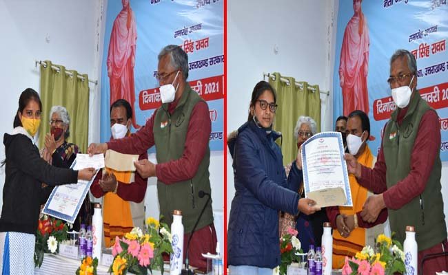 देहरादून : मुख्यमंत्री त्रिवेन्द्र सिंह रावत ने शनिवार को मुख्यमंत्री आवास स्थित जनता दर्शन हॉल में उच्च शिक्षा विभाग द्वारा राष्ट्रीय युवा चेतना दिवस एवं नेताजी सुभाष चन्द्र बोस की जयंती के उपलक्ष्य में आयोजित राज्य स्तरीय निबंध प्रतियोगिता के विजेताओं को पुरस्कृत किया एवं प्रशस्ति पत्र प्रदान किया। इस प्रतियोगिता में प्रथम तीन विजेताओं को क्रमशः 01 लाख, 75 हजार एवं 50 हजार रूपये की धनराशि का चेक दिया गया। राज्य स्तर पर निबंध प्रतियोगिता में डी.डब्ल्यू.टी कॉलेज की बीएड की छात्रा सौम्या ने प्रथम, डीएवी पीजी कॉलेज के छात्र उज्जवल शर्मा ने द्वितीय एवं बाल गंगा महाविद्यालय सैन्दूल कैमर की छात्रा अंजलि मंमगई ने तृतीय स्थान प्राप्त किया। युवा कल्याण विभाग द्वारा “नेताजी सुभाष चन्द्र बोस युवाओं की प्रेरणा” विषय पर राज्य स्तरीय भाषण प्रतियोगिता का आयोजन किया गया। जिसमें देहरादून के गौतम खट्टर ने प्रथम, अल्मोड़ा की हिमानी दुर्गापाल ने द्वितीय एवं नैनीताल के रोहित सिंह रावत एवं हरिद्वार की कुमारी अक्षी गौड़ ने संयुक्त रूप से तृतीय स्थान प्राप्त किया।