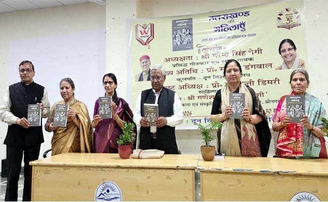 देहरादून: बीना बेंजवाल द्वारा लिखित और विनसर पब्लिशिंग कंपनी द्वारा प्रकाशित पुस्तक उत्तराखण्ड की महिलाएँ : संघर्ष और उपलब्धियों का परिचयात्मक संचयन के लोकार्पण समारोह की अध्यक्षता करते हुए प्रसिद्ध गीतकार एवं लोक गायक नरेन्द्र सिंह नेगी ने कहा कि अपने -अपने क्षेत्र में विशिष्ट योगदान देने वाली 351 महिलाओं के बारे में लिखी गई यह पुस्तक शोधार्थियों को एक संदर्भ पुस्तक के रूप में काम आयेगी। श्री नेगी ने कहा कि इस पुस्तक में कई ऐसी महिलाओं का उल्लेख है, जिनके बारे में कई लोग जानते तक नहीं हैं। यह पुस्तक हमारे समाज का आईना है, जहां पहाड़ की नारियों ने अपने कर्म कौशल से इतिहास रचा है।