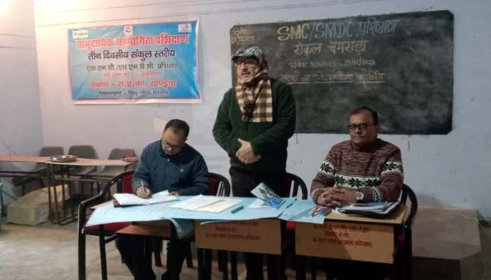 श्रीनगर गढ़वाल: संकुल चमराडा के राजकीय इंटर कॉलेज खन्डाह, सुमाडी,राजकीय प्राथमिक विद्यालय कोटी,भेलगढ एवं चडीगांव के विद्यालय प्रबन्धन समिति के पदाधिकारियों तथा सदस्यों का तीन दिवसीय प्रशिक्षण राजकीय इन्टर कॉलेज खन्डाह में सम्पन्न हुआ। प्रशिक्षण में सन्दर्भ दाता के रूप में राज्यपाल पुरस्कार से सम्मानित हिन्दी अध्यापक अखिलेश चन्द्र चमोला तथा संजय नौडियाल शिक्षा समन्वयक संकुल चमराडा की रही।
