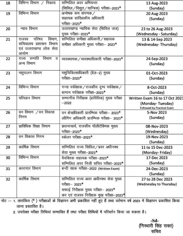 UKPSC Recruitment 2023: उत्तराखंड लोक सेवा आयोग ने इस साल यानी वर्ष 2023 में होने वाली 32 भर्ती परीक्षाओं का संशोधित कलेंडर जारी कर दिया है। यूकेपीएससी की भर्तियों में धांधली सामने आने के बाद आयोग ने पूर्व में जारी परीक्षा कैलेंडर में संशोधन किया है। बता दें कि, पटवारी भर्ती का पेपर लीक होने के बाद UKPSC ने यह परीक्षा निरस्त कर फिर से करने का निर्णय लिया है। वहीं इसके बाद संदेह के आधार पर सहायक अभियंता (एई) और अवर अभियंता (जेई) की भर्ती परीक्षाओं की भी जांच कराने का निर्णय लिया गया। हालांकि एसटीएफ फॉरेस्ट गार्ड व पीसीएस की परीक्षाओं को लेकर क्लीन चिट दे चुका है।