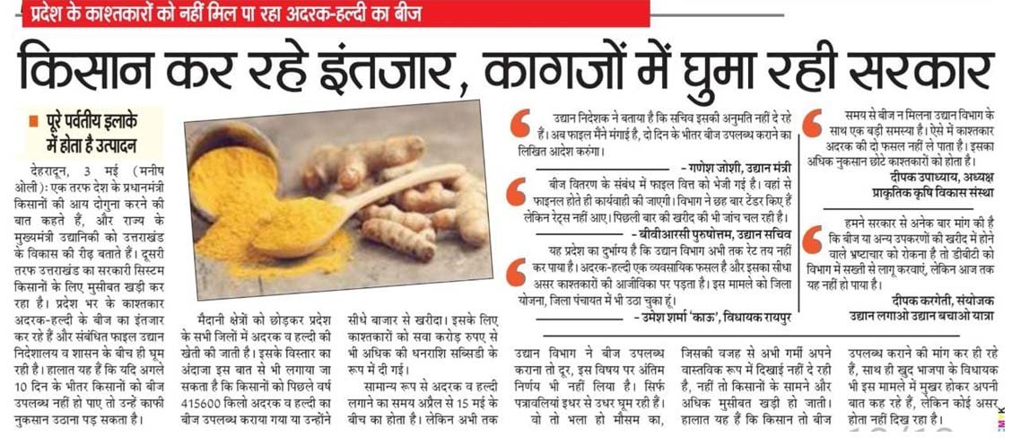 बीज खरीद में लगातार हो रहे फर्जीवाड़े व उद्यान विभाग की उदासीनता के कारण राज्य नहीं बन पा रहा है अदरक बीज उत्पादन में आत्मनिर्भर जिस कारण कृषकों को समय पर उपलब्ध नहीं हो पा रहा है उच्च गुणवत्ता का अदरक बीज।
