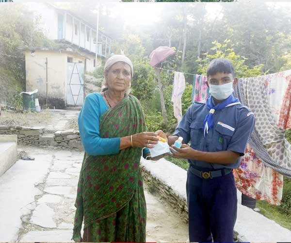 राष्ट्रीय सेवा योजना की कार्यक्रम अधिकारी पूनम रावत व विकासखंड सचिव स्काउट गाइड मीनाक्षी ध्यानी के नेतृत्व में स्वयंसेवियों द्वारा विभिन्न गाँवो में जाकर ग्रामीणों को स्वयं बनाये कपडे के मास्क बांटे। साथ ही स्वयंसेवियों द्वारा कोविड-19 बीमारी से बचाव के लिए चार्ट बनाकर गांव के सार्वजानिक स्थानो पर लगाये गए और लोगो को बीमारी से बचने की जानकारी दी। कार्यक्रम में स्वयंसेवी आयुष, सिमरन, आंचल, दीपांजलि आदि मुख्य रूप से रहे।