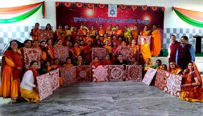 कूर्माचल परिषद की सभी शाखाओं की महिलाओं व बच्चों ने उत्साह से कूर्माचल भवन में पारंपरिक ऐपण बनाकर अपनी सँस्कृति अपनी पहचान के संरक्षण का संकल्प लेते हुए पारम्परिक एपेड मुख्यतः शुभ कार्य नए कार्य का आरम्भ विभिन्न चौकियों का आलेखन जैसे आचार्य चौकी, सूर्य चौकी, लक्ष्मी चौकी, शिव पीठ, नौ बिन्दु स्वास्तिक, जनेऊ चौकी, धुलियर्घ्य चौकी, सरस्वती चौकी, भद्र आदि अनेक आलेखनो से प्राकृतिक लाल गेरू और बिस्वार से सजाया गया। दहेली दही दहलीज मंदिर में वसुंधरा बनाई गई जो मुख्यतः 11, 9, 7 रेखाओं से बनती है. चावल को 1 दिन पहले भिगाकर पीस दिया जाता है, जिस विस्वार कहा जाता है. इसके बाद रोली पीठाइ का उपयोग कर जाता है और देवी देवताओं का आह्वान किया जाता है।