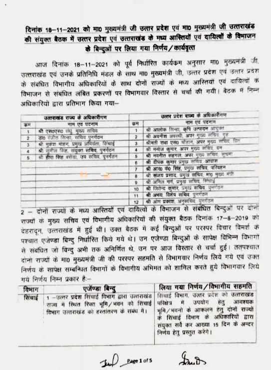बता दें कि पिछले माह 17 नवंबर को दोनों राज्यों के मुख्यमंत्रियों ने मुलाकात की थी। उत्तराखंड के मुख्यमंत्री पुष्कर सिंह धामी दो दिवसीय यूपी दौरे पर गए थे। जहां यूपी-उत्तराखंड की परिसंपत्तियों को लेकर चल रहे विवाद पर चर्चा हुई। दोनों मुख्यमंत्रियों की बैठक में तय किया गया था कि उत्तराखंड और यूपी में संपत्तियों का आधा आधा बंटवारा होगा।